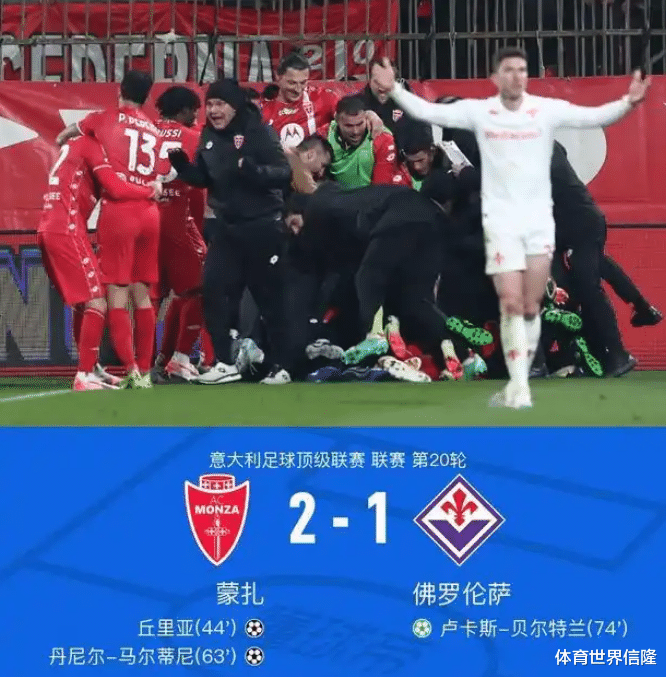 意甲第20轮临了一场比赛爆出大冷,5连败的垫底球队蒙扎主场2:1打败欧战区球队佛罗伦萨。